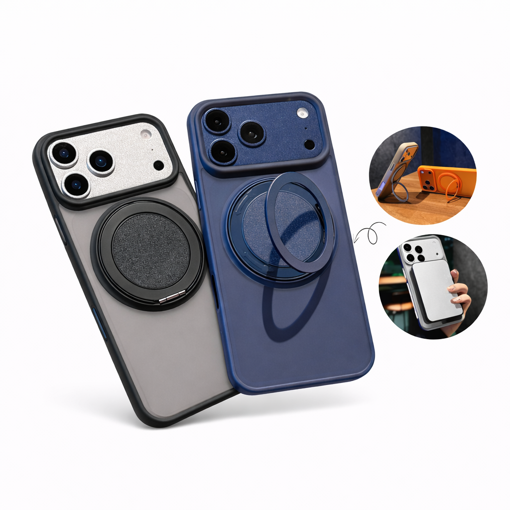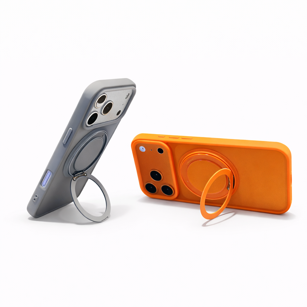 Den integrerade ringen kan roteras 360° och ger ett stabilt och bekvämt grepp när du håller din telefon. Den fungerar även som ett praktiskt stativ så att du enkelt kan ställa upp mobilen för video, samtal eller streaming. Designen gör den både funktionell och diskret i vardagen.